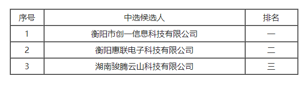 衡糧集團OA協(xié)同辦公系統采購(比選編號BX-013)于2024年8月19日上午9點(diǎn)30分(北京時(shí)間)進(jìn)行了比選活動(dòng)。本項目采用“綜合評分法”,經(jīng)評審小組綜合評審,現將中選候選人排名結果公示如下: