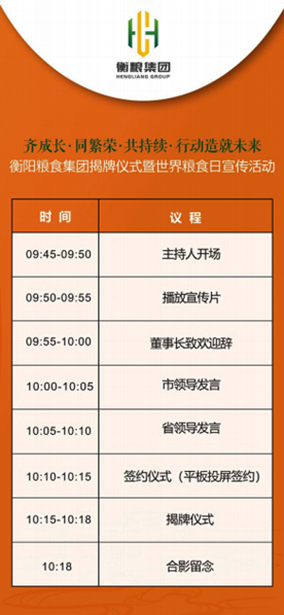 衡陽(yáng)糧食集團揭牌儀式暨世界糧食日宣傳活動(dòng)時(shí)間及議程