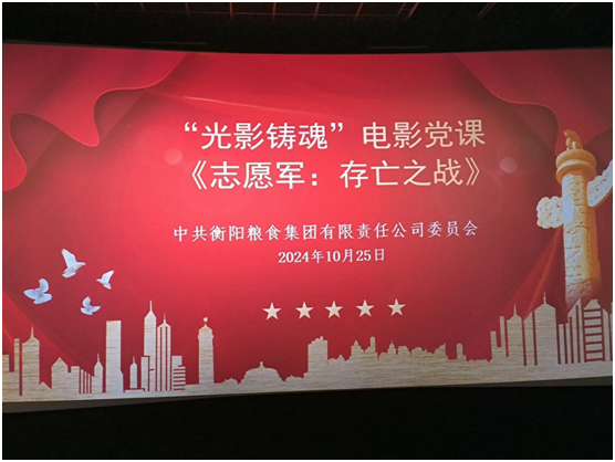 為慶祝中華人民共和國成立75周年,重溫紅色歷史,弘揚愛(ài)國主義精神。10月25日下午,衡糧集團組織全體黨員、入黨積極分子、非中共黨員中層管理員開(kāi)展“光影鑄魂”電影黨課活動(dòng)集中觀(guān)看紅色電影《志愿軍:存亡之戰》。
